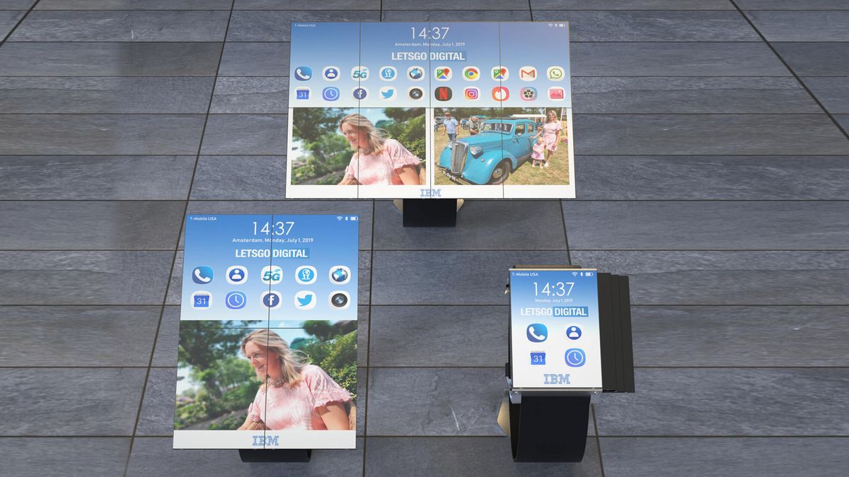 Dutch blog LetsGoDigital has mocked-up a series of high-resolution images of the mysterious folding device based on the line drawings filed with the IBM patent.